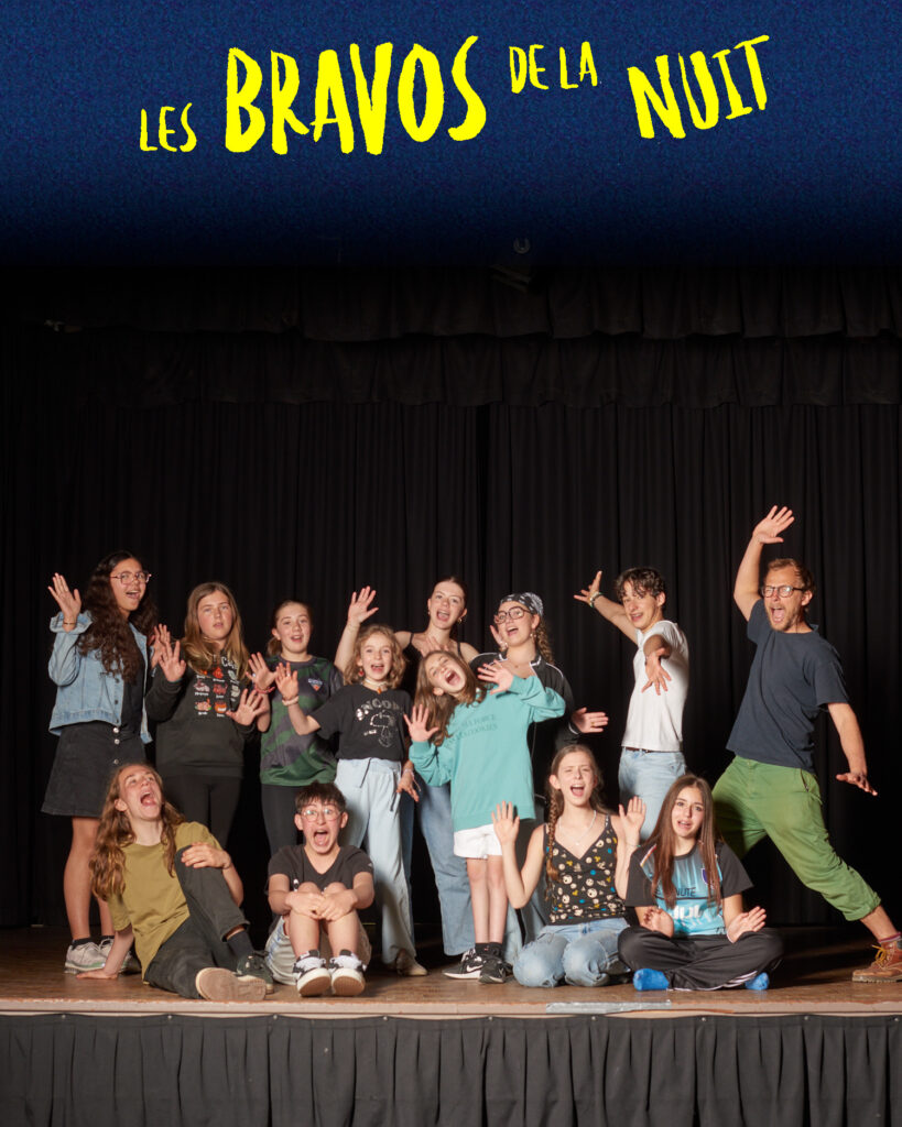Cette action qui s’appelle Les Bravos des Ados consiste à proposer gratuitement à un groupe d’adolescents volontaires une approche concrète du travail d’acteur par une création sous formes de stages, aboutissant à un spectacle joué sur plusieurs représentations pendant le festival Les Bravos de la nuit qui a lieu chaque année fin août. Ce travail permet aux participants de découvrir le théâtre par la pratique, d’aborder l’ensemble du processus de création, de l’écriture à la scène, et de s’immerger pendant le festival dans le monde du théâtre professionnel. A travers ce jeune public participant, l’action peut sensibiliser les familles et tout le public du territoire au théâtre contemporain.